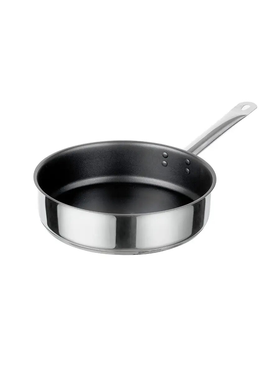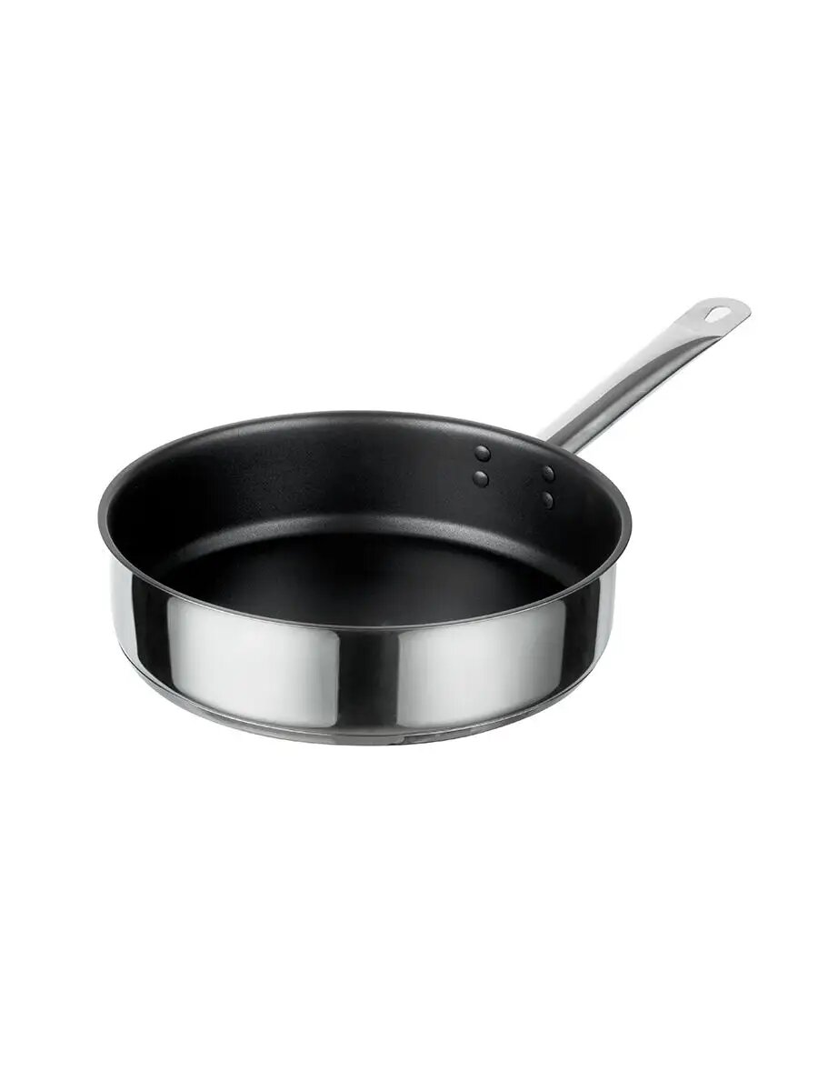 Сковорода глубокая из нержавеющей стали с антипригарным покрытием - стильное решение для Вашей кухни. Сотейник антипригарный идеально подходит для индукции, нагревается быстрее алюминиевых аналогов, т. к. дно полностью выполнено из стали. Следовательно, меньше расходуется энергия. Утолщенное дно равномерно распределяет тепло и сохраняет его, так же способствую более быстрому приготовлению пищи. Благодаря антипргарному покрытию можно готовить практически без использования масла и сделать своё меню более диетическим и полезным. Сотейник отлично подходит как для жарки, так и для тушения. Диаметр сковороды 24 см, диаметр дна 22 см, высота борта 6.5 см. Подходит для всех типов плит, включая индукцию. Можно использовать в посудомоечной машине.