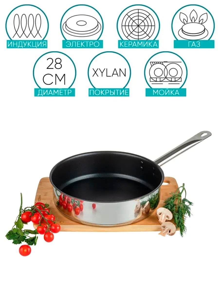 Купить Сковорода сотейник глубокая 28см, Xylan, индукция, нерж с доставкой по всей России. Сковорода сотейник глубокая 28см, Xylan, индукция, нерж: сравнение цен, характеристики, фото, актуальное наличие и цены.