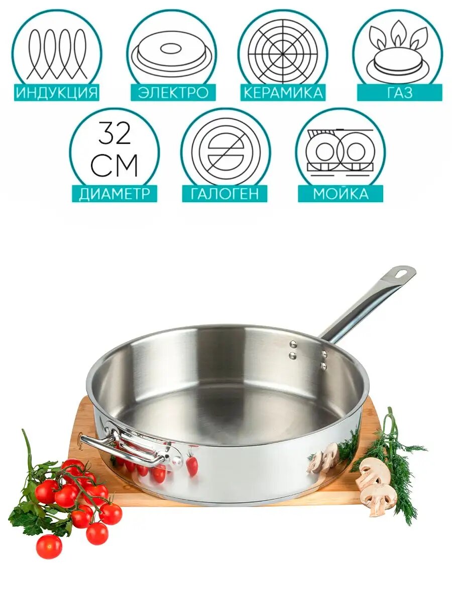 Купить Сковорода сотейник глубокая 32см, индукция, нерж с доставкой по всей России. Сковорода сотейник глубокая 32см, индукция, нерж: сравнение цен, характеристики, фото, актуальное наличие и цены.