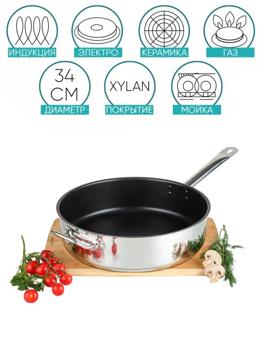 Купить Сковорода сотейник глубокая 34см, Xylan, индукция, нерж с доставкой по всей России. Сковорода сотейник глубокая 34см, Xylan, индукция, нерж: сравнение цен, характеристики, фото, актуальное наличие и цены.