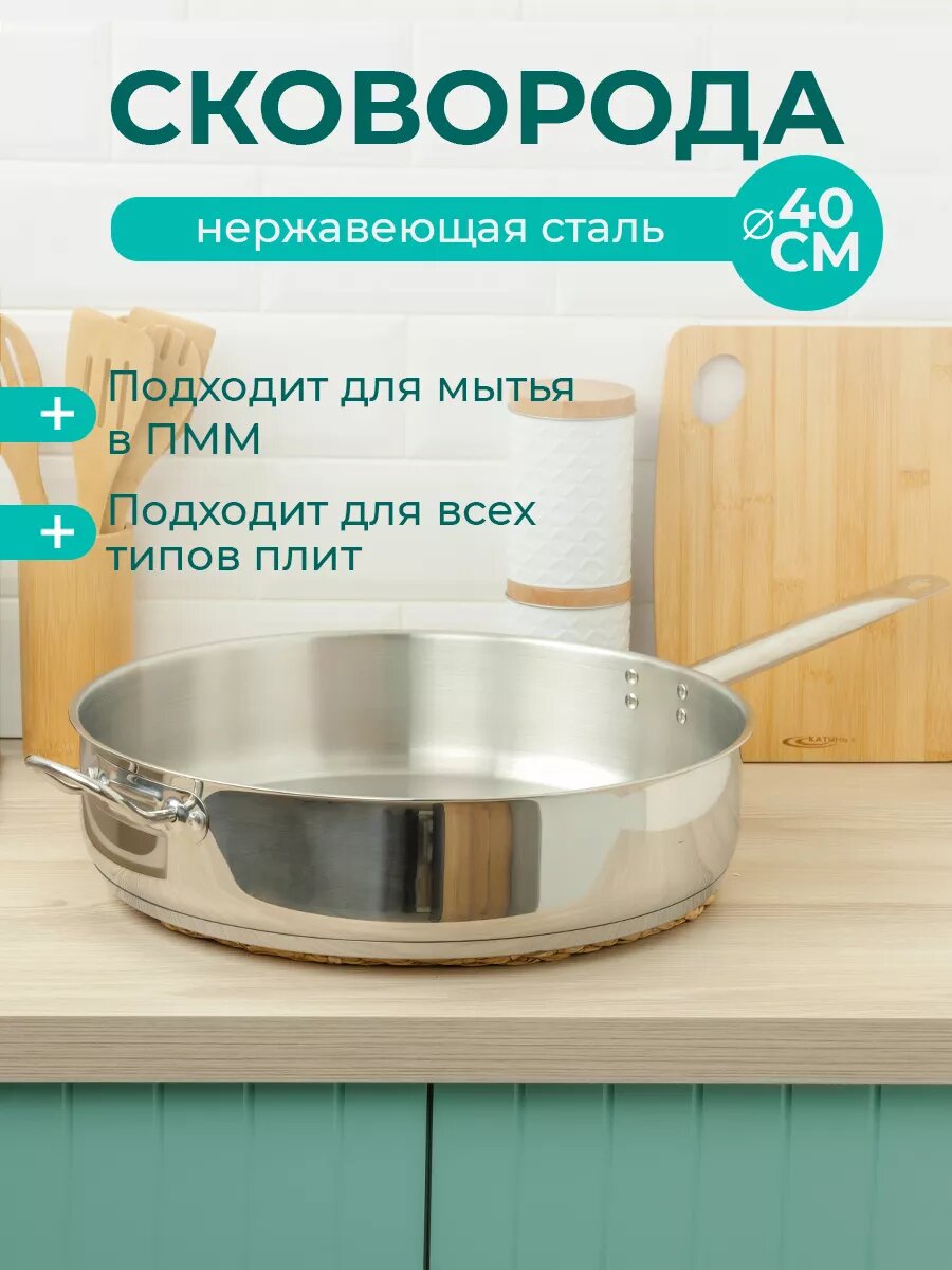 Купить Сковорода сотейник глубокая 40 см, индукция, нерж с доставкой по всей России. Сковорода сотейник глубокая 40 см, индукция, нерж: сравнение цен, характеристики, фото, актуальное наличие и цены.