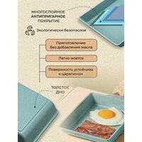 Сковорода для омлета глубокая из литого алюминия с антипригарным каменным и мраморным покрытием. Блинница с высокими бортами квадратная для индукционной, газовой, электрической плиты идеально подходит для приготовления яичницы, блинов, оладий, глазуньи, омлета, панкейков, пиццы, мучных изделий, детских блюд. Легко моется, не царапается, можно брать с собой в поход, удобна для приготовления завтрака. Наша сковорода подходит для любых типов плит, включая индукционную, более того сковороду можно использовать для приготовления блюд в духовке. Многофункциональная, квадратная сковорода - то, что должно быть у каждой хозяйки! Сковорода позволяет готовить разнообразные блюда: яйца, оладьи, панкейки, яичные рулеты, сырники и многое другое - все что душе угодно и все это на одной сковороде. Можно удовлетворить вкусовые потребности всей семьи одновременно. Наша сковорода позволит сэкономить время на приготовление завтрака, обеда или ужина. Сковорода с антипригарным покрытием, легко моется, так же ее можно мыть в посудомоечной машине. На данной сковороде ручка из бакелита (термостойкой пластмассы). Её основные плюсы в том, что она не нагревается, не скользит, обеспечивая удобный хват. Наша сковорода подходит для любых типов плит, включая индукционную. Она подойдет если Вы давно искали: Форма для яичницы, для блинов, блинница, блинная, оладушек, оладий, оладьев, омлета.
