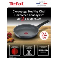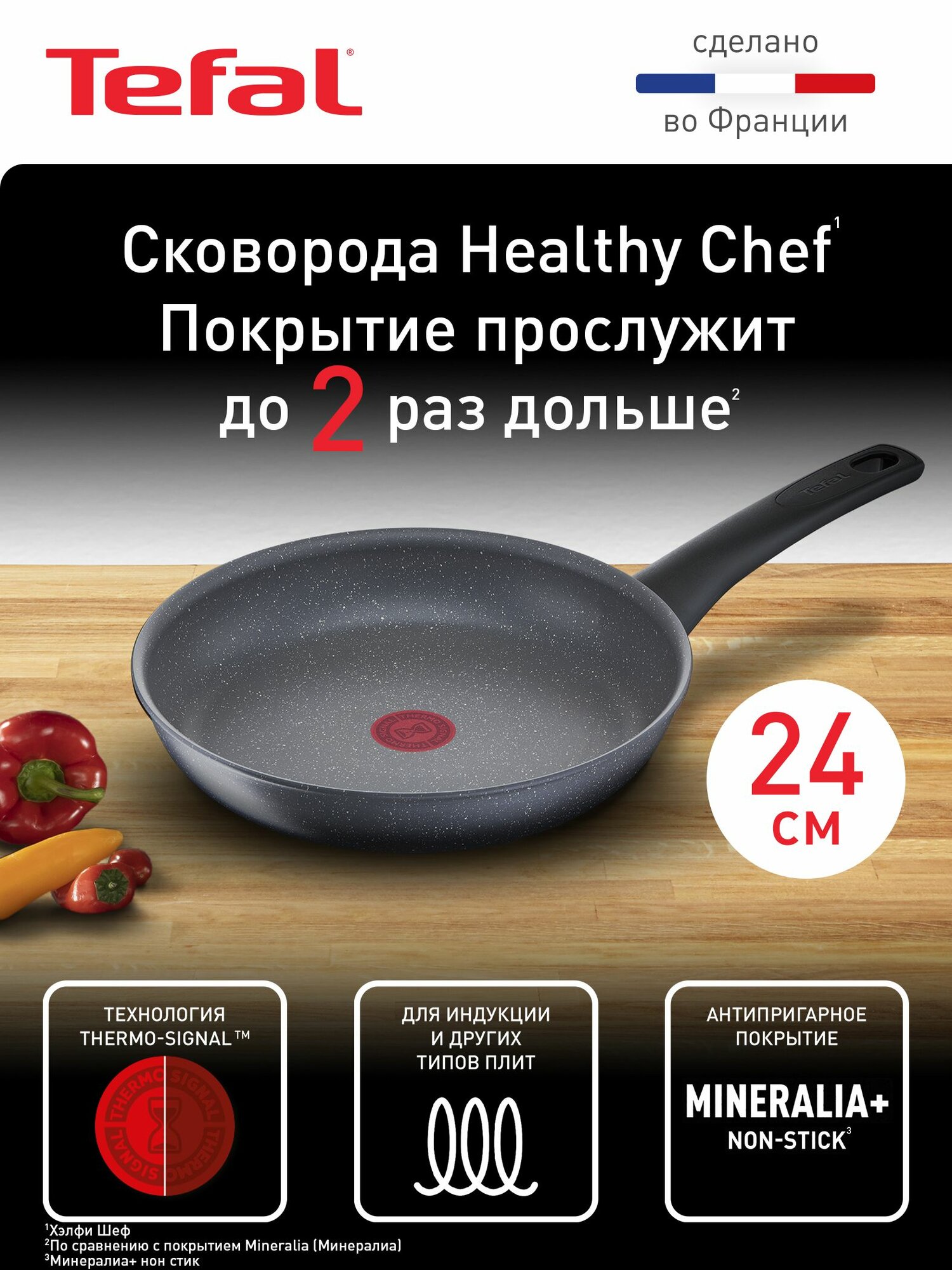 Сковорода Tefal Healthy Chef 24 см, с индикатором температуры, с антипригарным покрытием, для газовых, электрических и индукционных плит, сделано во Франции