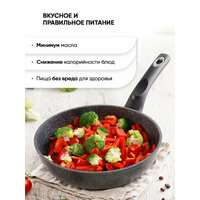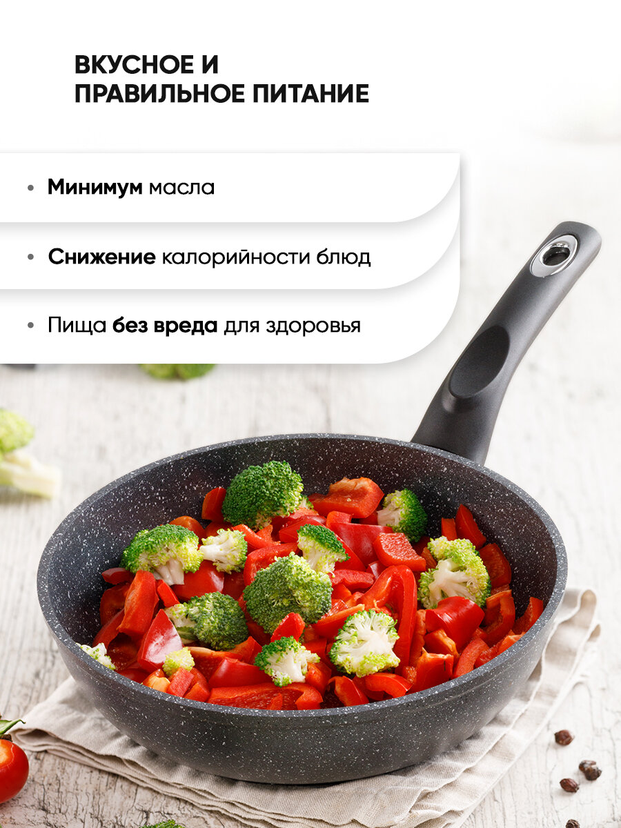 Вдохновляясь модными тенденциями и актуальными трендами в дизайне, мы создали современную линейку антипригарной посуды серии Кристалл ТМ "Традиция готовить с любовью". Сковороды серии Кристалл станут любимым предметом и самым надежным помощником на кухне, поскольку предназначены для частого использования, жарки и тушения продуктов. Толщина дна и стенок оптимальна, чтобы обеспечивать хорошую теплопроводность и равномерный нагрев, без утяжеления изделия. Многослойное антипригарное покрытие серии Кристалл на водной основе не содержит PFOA не только безопасное, но и красивое: основной серый цвет покрытия сияет и на солнце и в пасмурные дни. В его структуре можно увидеть множество микроскопических частиц, отражающих свет. Оптимальная высота бортов делают эту посуду идеальной для приготовления блюд, в которых достаточно много жидкости или объема. Можно готовить на всех варочных поверхностях, в том числе и индукционной. Эргономичная ручка сделана из бакелита, этот материал не нагревается в процессе приготовления и прихватки не понадобятся при условии правильного расположения сковороды на плите. Изделия со съемной ручкой можно ставить в духовку до 200 °С, предварительно отстегнув съемную ручку. За сковородой легко ухаживать вручную, а также можно мыть в посудомоечной машине. Соберите собственный набор сковородок Кристалл любого размера. Посуда для кухни – очень важная составляющая, которая подарит комфорт и уют, а посуда для приготовления – это то, чем мы пользуется почти ежедневно. Красивая и функциональная кухонная утварь служит прекрасным подарком на день рождения, юбилей, на Новый год, на свадьбу, на 8 марта, на новоселье и просто порадовать без повода.