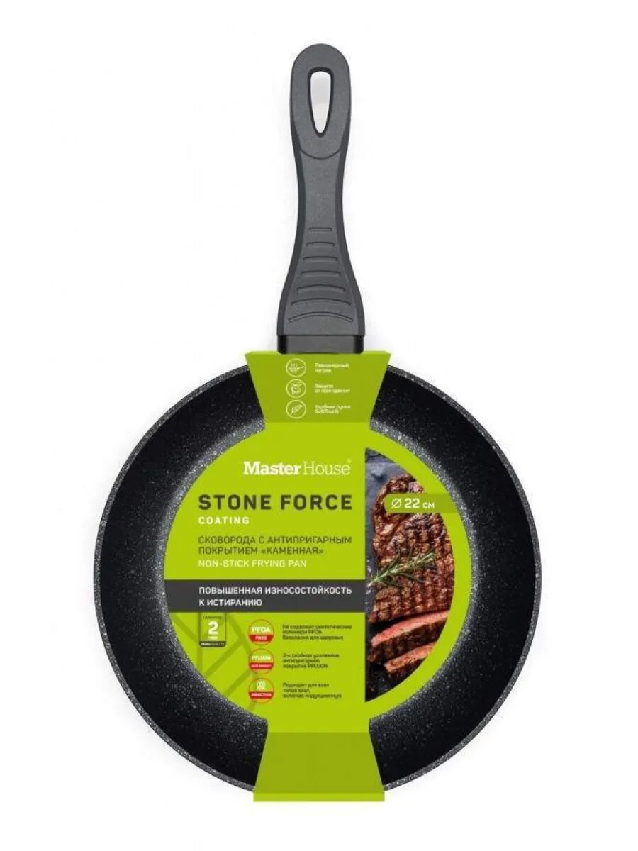 Сковорода Polaris Monolit-20F с антипригарным покрытием / 20 см подходит для индукционной плиты, чёрный