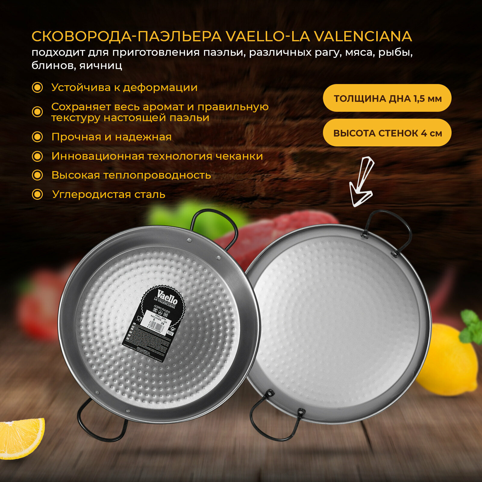 Сковорода Vaello Паэльера 34см. Vaello-La Valenciana из полированной стали Испания: сравнение цен, характеристики, фото, актуальное наличие и цены.