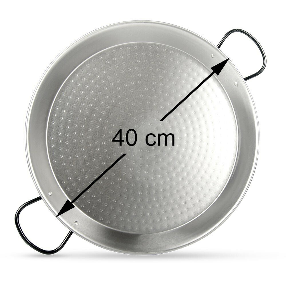 Традиционная валенсийская сковорода-паэльера 40см. Vaello-La Valenciana из углеродистой стали (также известной как полированная сталь или acero pulido). Они простые, очень прочные, изготовлены из многослойной полированной стали.