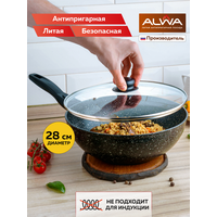 Сковорода-вок от ALWA, изготовленная из литого алюминия, с антипригарным покрытием и крышкой, станет незаменимым помощником на кухне для любой хозяйки. Эта посуда имеет современный метод ручного литья и дополнительный защитный слой в упаковке, что гарантирует ее прочность и долговечность. Сковородка-вок со съемной ручкой от ALWA и крышкой подойдет для всех типов плит (кроме индукционных), кроме того, она идеально подходит для приготовления азиатских, тайских, китайских, корейских блюд и лапши, а также для жарки, тушения, готовки на пару и супов. Благодаря конусовидной форме и равномерному нагреву, пища готовится быстро и равномерно, сохраняя все свои питательные вещества и полезные свойства. Сковорода с диаметром дна 15 см, высотой стенок 10 см и диаметром верха 28 см имеет толщину стенок 3 мм и диаметр крышки 28 см. Эта кухонная утварь оснащена антипригарным покрытием, которое позволяет готовить без использования большого количества масла и легко очищать после использования. ТМ ALWA - это российский бренд, который производит высококачественную посуду по доступным ценам. Каждое изделие производится в соответствии со всеми стандартами и ГОСТ, с инструкцией по эксплуатации. Сковорода-вок "Альва" станет прекрасным подарком для женщины или девушки, мамы, бабушки, сестры, подруги, коллеги на день рождения, 8 марта. Это также может быть замечательный сюрприз для папы, парня, дедушки, мужчины или мужа на юбилей, 23 февраля или любой другой праздник.