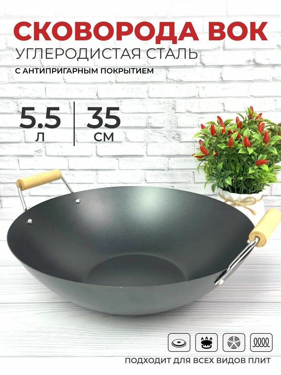Сковорода вок Мерали из углеродистой стали с двумя ручками и антипригарным покрытием - это не просто посуда. Это настоящее открытие для настоящих гурманов и любителей азиатской кухни, и не только! Благодаря своей глубокой форме, она позволяет быстро И равномерно поджаривать мясо, овощи, лапшу, приготовить плов, блины или оладьи, сохраняя их нежность и вкус. Ее уникальные качества делают ее идеальным выбором для приготовления любимых блюд в не только В домашних условиях, но даже на мангале ИЛИ В походных условиях! Такая сковорода - отличный подарок для любителей кулинарии, которые ценят качество И функциональность. Это отличный подарок мужчине, маме, бабушке, родным и близким! Она идеально подходит для приготовления разнообразного количества блюд, включая яичницу, шашлык, ушек, паст, рагу, и многие другие, включая даже суп! Её можно использовать как обычную или блинную сковороду. Вок сковорода подходит К индукционной плите, газовой, электрической и духовке, что делает ее универсальной и удобной в использовании. Сковорода вок подходит не только для приготовления еды в домашних условиях. Если вы любите активный отдых и не представляете свою жизнь без походов и пикников, то сковорода будет незаменимым помощником в готовке аппетитных блюд на свежем воздухе! Её можно легко использовать на мангале или открытом огне. Прочный материал, из которого она изготовлена, гарантирует ее надежность И долговечность.