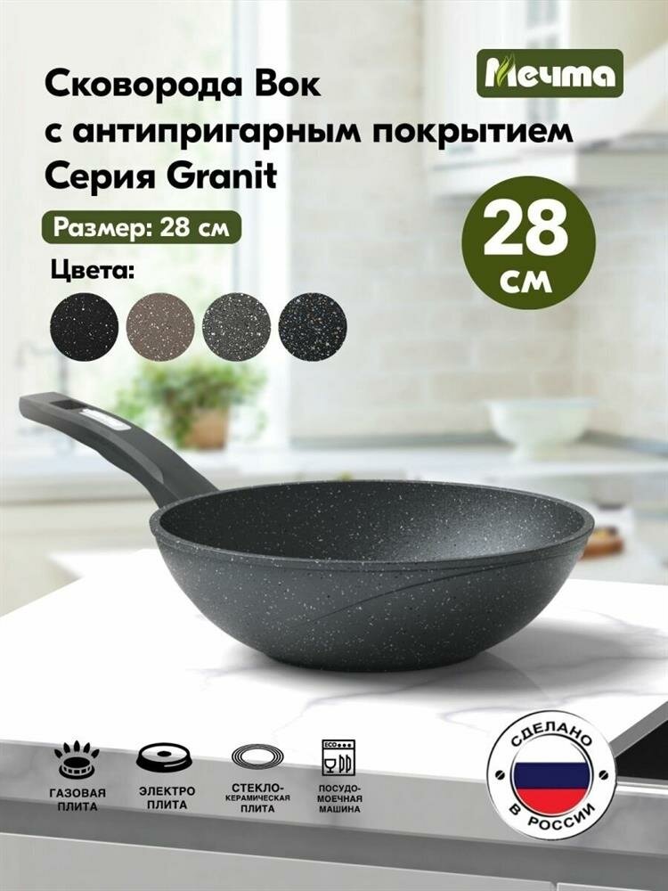 Купить Сковорода Мечта Посуда Мечта ВОК «Гранит» съемная ручка 28 см (078701) с доставкой по всей России. Сковорода Мечта Посуда Мечта ВОК «Гранит» съемная ручка 28 см (078701): сравнение цен, характеристики, фото, актуальное наличие и цены.