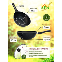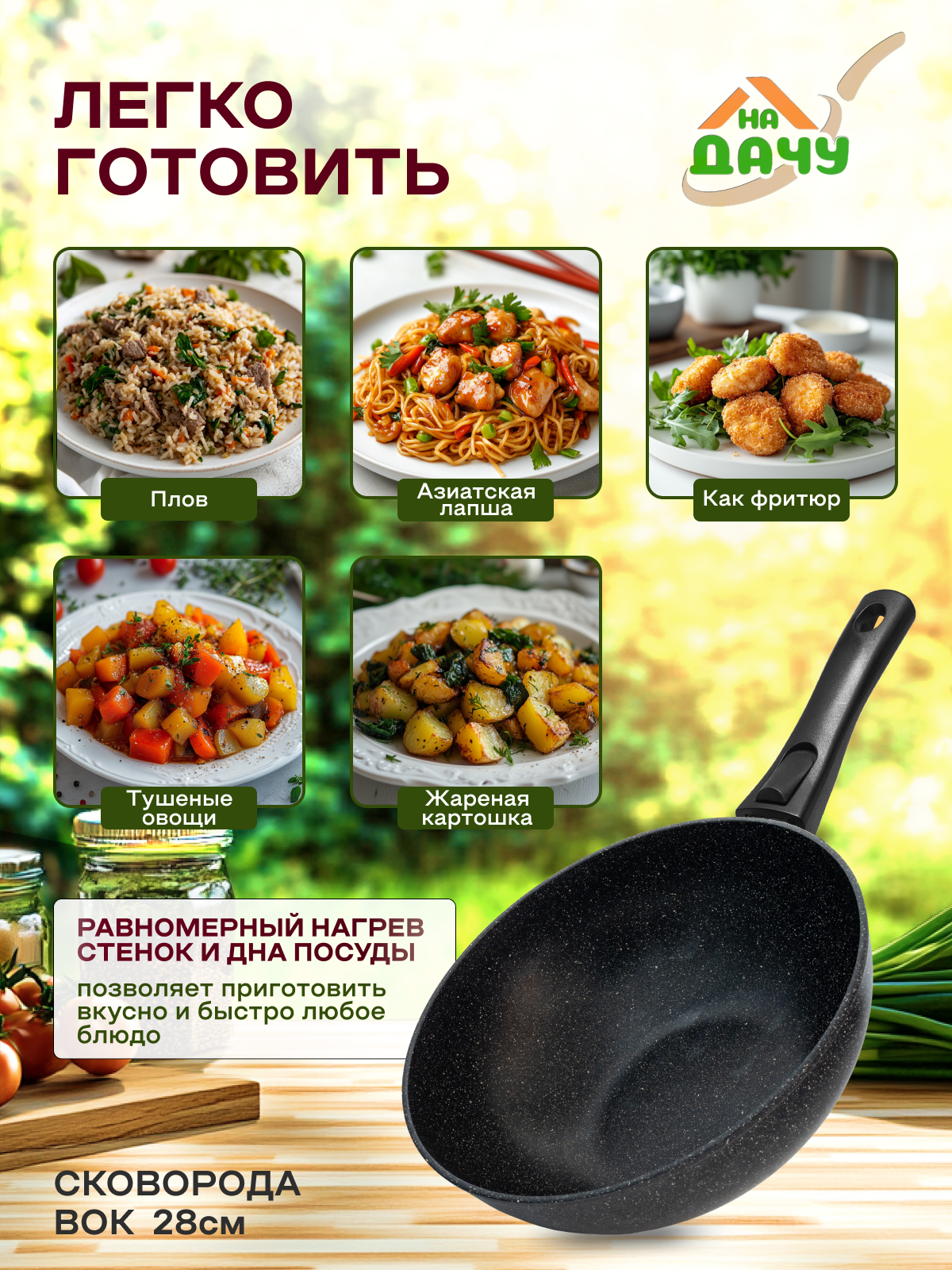 Сковорода вок На Дачу 28 см с крышкой в комплекте и съемной ручкой антипригарная литая DV28MW11: сравнение цен, характеристики, фото, актуальное наличие и цены.