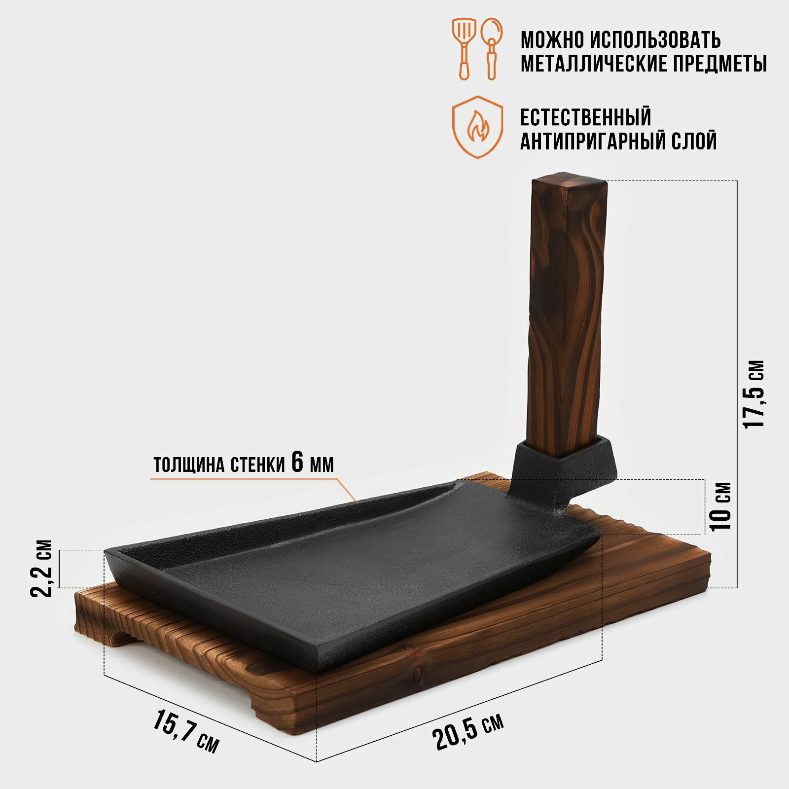 Артикул: 2164-829. Размеры: 7 x 16 x 26 см, Материал: Чугун, Вес: 1500 гр, Тип плиты: Для газовой плиты, Размер упаковки: 16.5 x 8 x 28 см, Крышка: Нет, Съёмная ручка: Да, Можно мыть в посудомоечной машине: Нет, Высота стенки, см: 2.2, Капсульное дно: Нет, Цвет: Чёрный, Вид сковороды: Стандартная, Толщина стенки, мм: 4, Толщина дна, мм: 6, Длина дна, см: 20.5, Форма: Трапеция, Подходит для использования на огне: Да. Чугунная сковорода Magma "Вунгтау" изготовлена из высококачественного чугуна, сковорода равномерно распределяет тепло и обеспечивает идеальное приготовление пищи. Благодаря своим толстым стенкам и дну, она долго сохраняет тепло, что позволяет экономить энергию и время. Антипригарное покрытие этой сковороды обеспечивает лёгкое снятие пищи и отсутствие пригорания. Кроме того, оно устойчиво к царапинам и износу, что гарантирует долгий срок службы. Деревянная подставка, которая идёт в комплекте с сковородой, придаёт ей особый шарм и делает её идеальным подарком для друзей и близких. Подставка выполнена из натурального дерева, экологичного и безопасного материала. Чугунная сковородаПреимущества товара: Высокое качество и долговечность; Равномерное распределение тепла; Естественное антипригарное покрытие; Универсальность (подходит для разных типов плит); Лёгкий уход (не требует частого мытья).