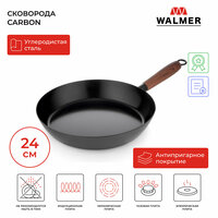 Во всем мире углерод ценится за свою прочность и устойчивость к износу. Эти качества позаимствовала и сковорода Walmer Carbon. Ее корпус выполнен из углеродистой стали, которая отличается высокой прочность и ее сложно деформировать.