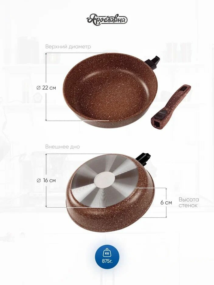 Купить Сковорода, Ярославна, 22 см, Коричневая со съемной ручкой с доставкой по всей России. Сковорода, Ярославна, 22 см, Коричневая со съемной ручкой: сравнение цен, характеристики, фото, актуальное наличие и цены.