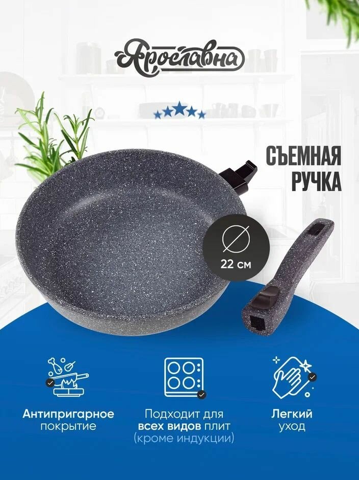 Купить Сковорода, Ярославна, 22 см, Серая со съемной ручкой с доставкой по всей России. Сковорода, Ярославна, 22 см, Серая со съемной ручкой: сравнение цен, характеристики, фото, актуальное наличие и цены.