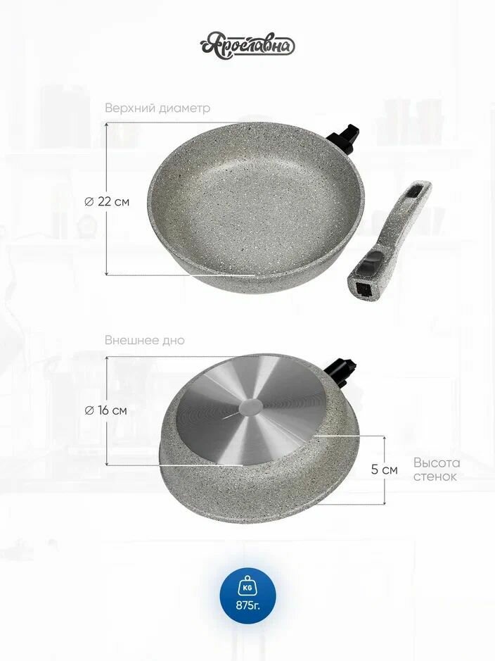 Сковорода, Ярославна, 22 см, Жемчуг со съемной ручкой: сравнение цен, характеристики, фото, актуальное наличие и цены.