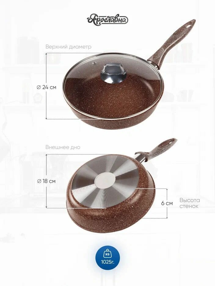 Сковорода, Ярославна, 24 см, Коричневая со стеклянной крышкой НЖ: сравнение цен, характеристики, фото, актуальное наличие и цены.