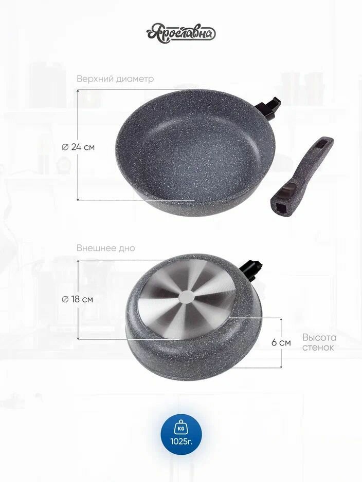 Купить Сковорода, Ярославна, 24 см, Серая со съемной ручкой с доставкой по всей России. Сковорода, Ярославна, 24 см, Серая со съемной ручкой: сравнение цен, характеристики, фото, актуальное наличие и цены.