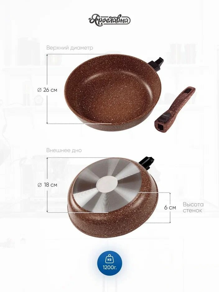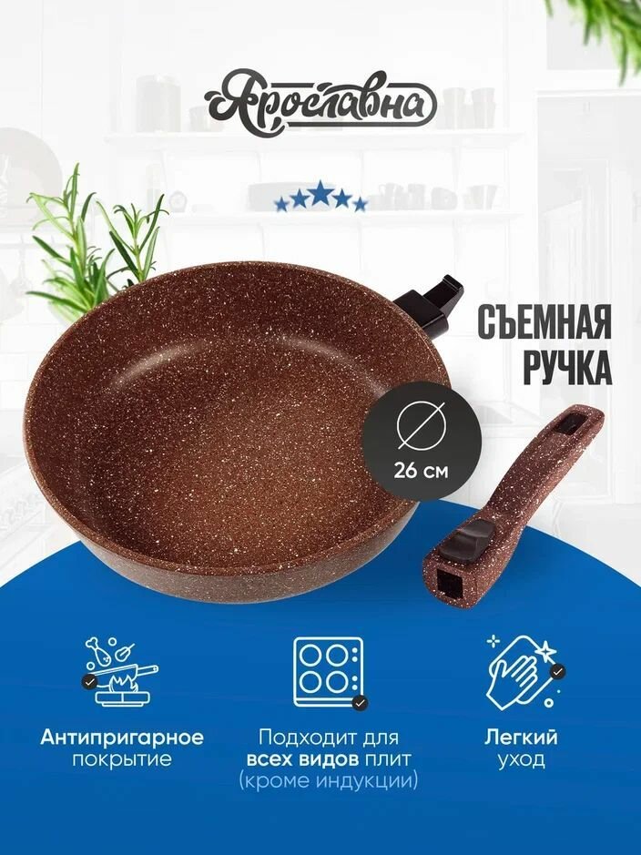 Купить Сковорода, Ярославна, 26 см, Коричневая со съемной ручкой с доставкой по всей России. Сковорода, Ярославна, 26 см, Коричневая со съемной ручкой: сравнение цен, характеристики, фото, актуальное наличие и цены.