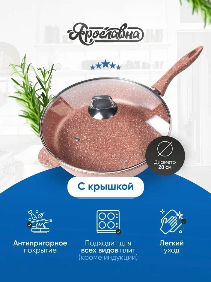 Купить Сковорода, Ярославна, 28 см, Бронза со стеклянной крышкой НЖ с доставкой по всей России. Сковорода, Ярославна, 28 см, Бронза со стеклянной крышкой НЖ: сравнение цен, характеристики, фото, актуальное наличие и цены.