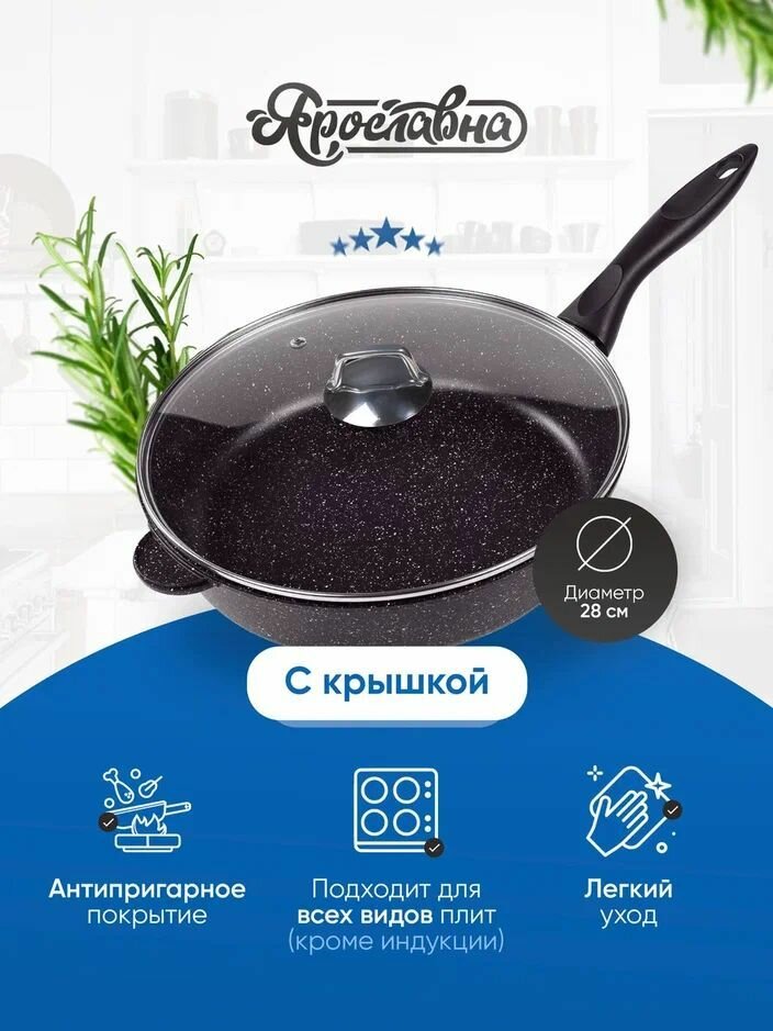 Купить Сковорода, Ярославна, 28 см, Черная со стеклянной крышкой НЖ с доставкой по всей России. Сковорода, Ярославна, 28 см, Черная со стеклянной крышкой НЖ: сравнение цен, характеристики, фото, актуальное наличие и цены.