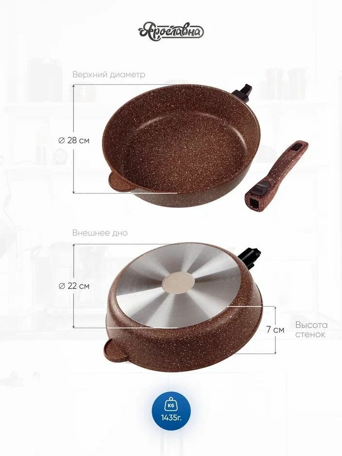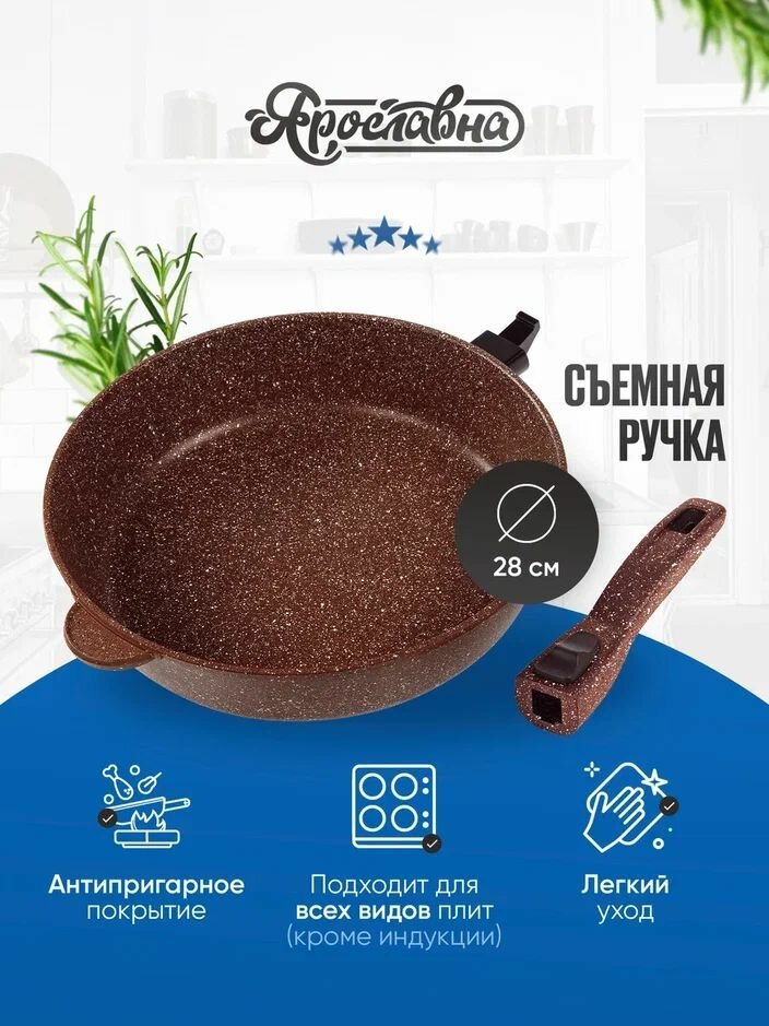 Купить Сковорода, Ярославна, 28 см, Коричневая со съемной ручкой с доставкой по всей России. Сковорода, Ярославна, 28 см, Коричневая со съемной ручкой: сравнение цен, характеристики, фото, актуальное наличие и цены.