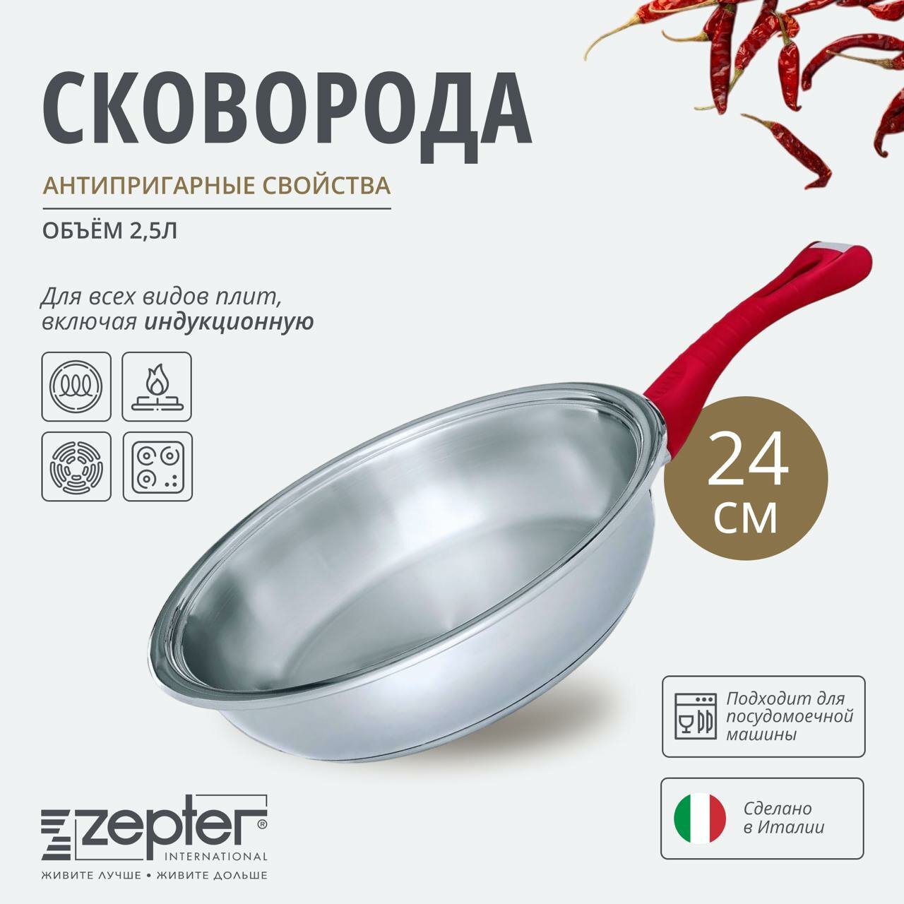 Купить Сковорода без крышки 24см без крышки с фиксированной ручкой из бакелита нержавеющая сталь,/ 2,5л от Zepter с доставкой по всей России. Сковорода без крышки 24см без крышки с фиксированной ручкой из бакелита нержавеющая сталь,/ 2,5л от Zepter: сравнение цен, характеристики, фото, актуальное наличие и цены.