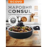 Купить Сковорода Жаровня d280 от. кр с крышкой 4л с антипригарным покрытием Consul Scovo с доставкой по всей России.