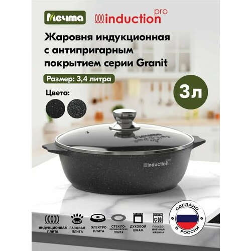 Купить Жаровня мечта 3л антипригарное покрытие гранит black Induction Pro — 33802И с доставкой по всей России.
