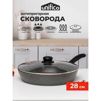 Сковородка с крышкой 28 см для индукционной плиты Unifico Elegante Pietra grigia: сравнение цен, характеристики, фото, актуальное наличие и цены.