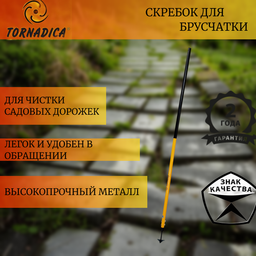 Скребок для брусчатки ТМ " Tornadica" имеет на концах рабочей поверхности три угла заточки, что позволяет удалять сорняки и мох между плитками различных садовых дорожек. Инструмент выкован вручную из закаленной стали. Рукоятка изготовлена из металла