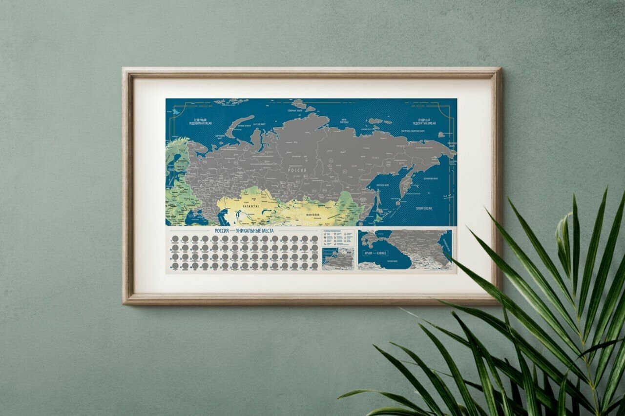 Скретч карта России - отличный подарок патриоту и всем, кто любит путешествовать по России. Плотная глянцевая бумага, печать и отделка высокого качества. Карта аккуратно свёрнута в рулон и упакована в подарочную плотную тубу. Формат карты 96х60 см, размер тубуса 8х62 см. Разработано и произведено в России. Те области, города, регионы, а также достопримечательности - уникальные места, которые вы посетили нужно стереть монеткой и они станут цветными. Таким образом вы с гордостью будете показывать своим друзьям те места, где вы уже побывали. Огромный размер позволяет детально рассмотреть не только каждый регион, но и реки, города, горы, пустыни, моря и океаны. Подробная территория каждого региона: подписаны центры и другие города и области, реки и моря, а также показаны горя, пустыни и леса. Можно отмечать не только области, но и конкретные места - например города, курорты горные трассы, горы, реки, острова. Отмечайте свои путешествия и превратите карту в летопись своих путешествий по России! Это идеальный подарок для юных исследователей, которые любят путешествовать и познавать новое, а так же для бывалых путешественников. На самой карте отмечены пиктограммы - место каждой из 60 достопримечательностей. На легенде карты вы можете выбрать уникальное место в России и стереть скретч слой с кружка, чтобы узнать чем оно примечательно. Посетите это уникальное место и сотрите его уже на самой карте. Так вы будете вести свой подсчёт посещения уникальных российских мест как дневник путешественника и туриста. Карта мира отличное дополнение к интерьеру квартиры, офиса или кафе. Подберите фоторамку или багет и повесьте на стену. Как подарок сувенир на Новый год, день рождения, 14 февраля, 23 февраля, 8 марта, день Святого Валентина, выпускной, день учителя, вечеринку, 1 сентября, свадьбу, юбилей, новоселье, масленицу просто так для друга, подруги, любимого, любимой, мужчине, женщине, папе, маме, сестре, брату, бабушке, дедушке, дочери, сыну, родственнику, учителю, руководителю, коллеге, сотруднику, сотруднице, даме, женщине, сестре, коллегам, мужу, жене, на корпоратив, универсально, победителю, участнику, жениху, невесте.