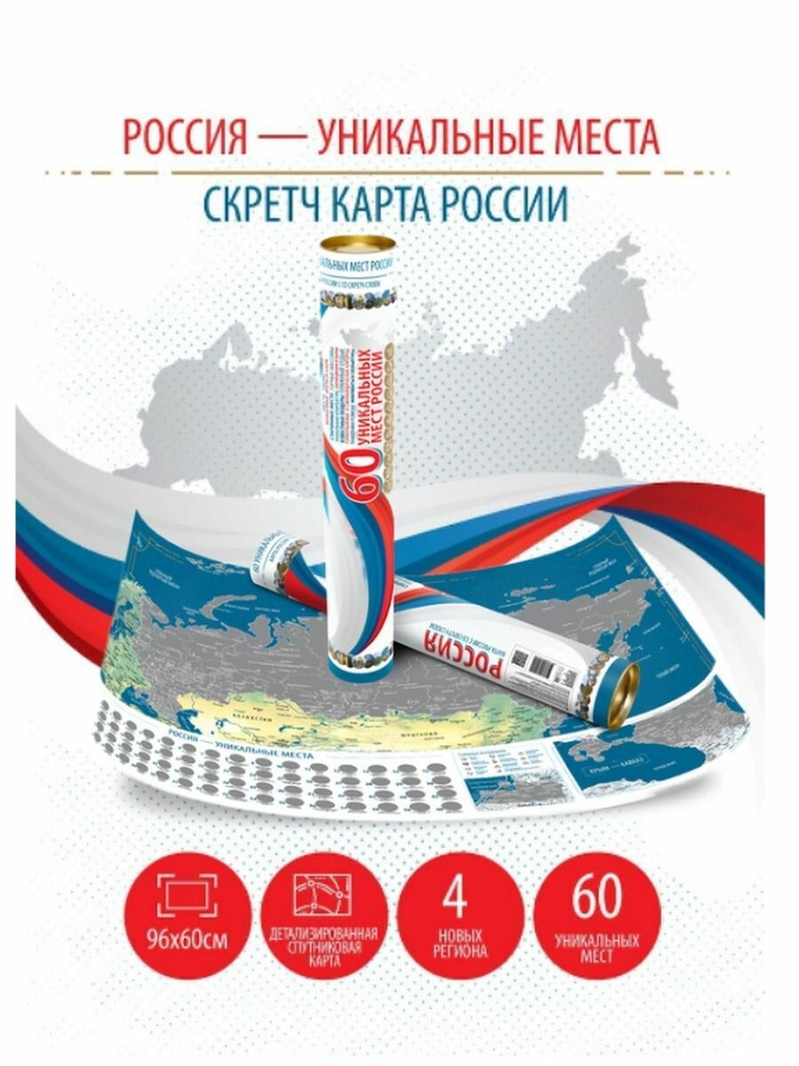 Те области, города, регионы, а также достопримечательности - уникальные места, которые вы посетили нужно стереть монеткой и они станут цветными. Таким образом вы с гордостью будете показывать своим друзьям те места, где вы уже побывали. Огромный размер позволяет детально рассмотреть не только каждый регион, но и реки, города, горы, пустыни, моря и океаны. Подробная территория каждого региона: подписаны центры и другие города и области, реки и моря, а также показаны горя, пустыни и леса. Можно отмечать не только области, но и конкретные места - например города, курорты горные трассы, горы, реки, острова. Отмечайте свои путешествия и превратите карту в летопись своих путешествий по России!