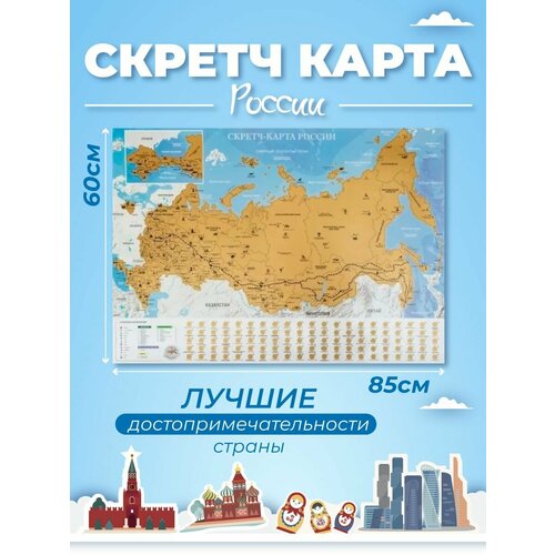 Настенная скретч карта России "Путешествуй и стирай" размером 60х85 см– это идеальный подарок для всех любителей путешествий и географии. Эта уникальная географическая карта России позволяет не только изучать наш страну, но и запечатлеть свои путешествия, стирая места, которые были посещены. Это делает данный товар интересным как для детей, так и для взрослых, вдохновляя их на новые открытия.