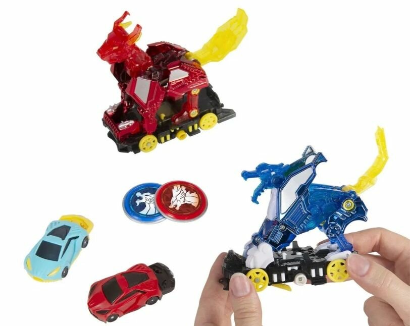 Химера и Кирин – мощные скричеры с трансформацией древних драконов! Выбирай, каким будет баттл: запусти Кирина и Химеру по одному или покажи двойную трансформацию драконов одним броском, соединив их все вместе! Два режима игры - запускать древних Скричеров можно как отдельно, так и в паре. Скричеры легко присоединяются друг другу с помощью специальных пазов по бокам игрушки. Они ловят энергетические диски или скричер-кары, совместно делают кувырок на 360°, трансформируются и запускают элементы трансформации вперед! Ты также можешь выбрать сценарий баттла, используя усиленный скричер-диск 4 сезона или скричер-кар для продолжения баттла в гонке! Набор Химера и Кирин – отличный набор в подарок! Редкие древние Скричеры в уникальном дизайне с эффектом металлик! Объединяясь в баттле, они становятся еще сильнее, а трансформация интереснее.