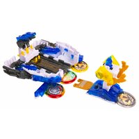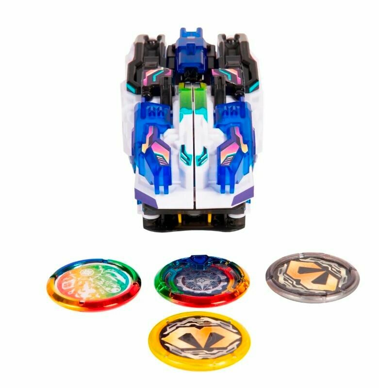 В набор входит 2 машинки-трансформера, 4 трансформационных диска диаметром 3 см