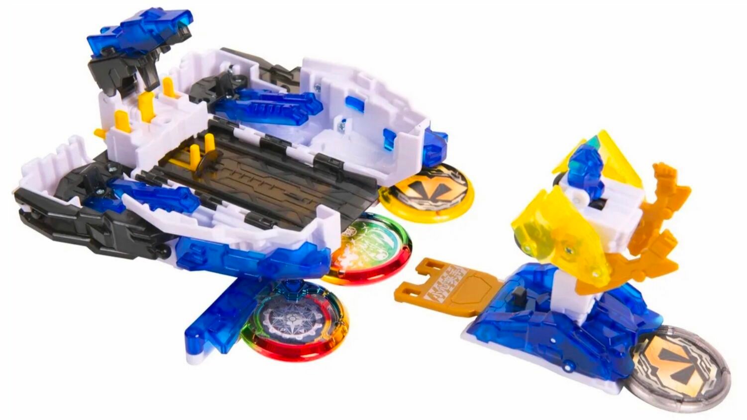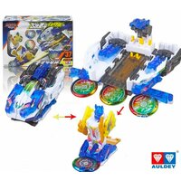 В игровой набор Аэроскричер 2-в-1 входит две машинки сразу! Скричер-станция разгоняется, захватывает 3 диска, открывается и активирует разблокировку скричер-сателлита, сателлит захватывает четвертый диск, делает кувырок на 360° и самостоятельно трансформируется прямо в воздухе. Обратно в машинку игрушка собирается вручную.