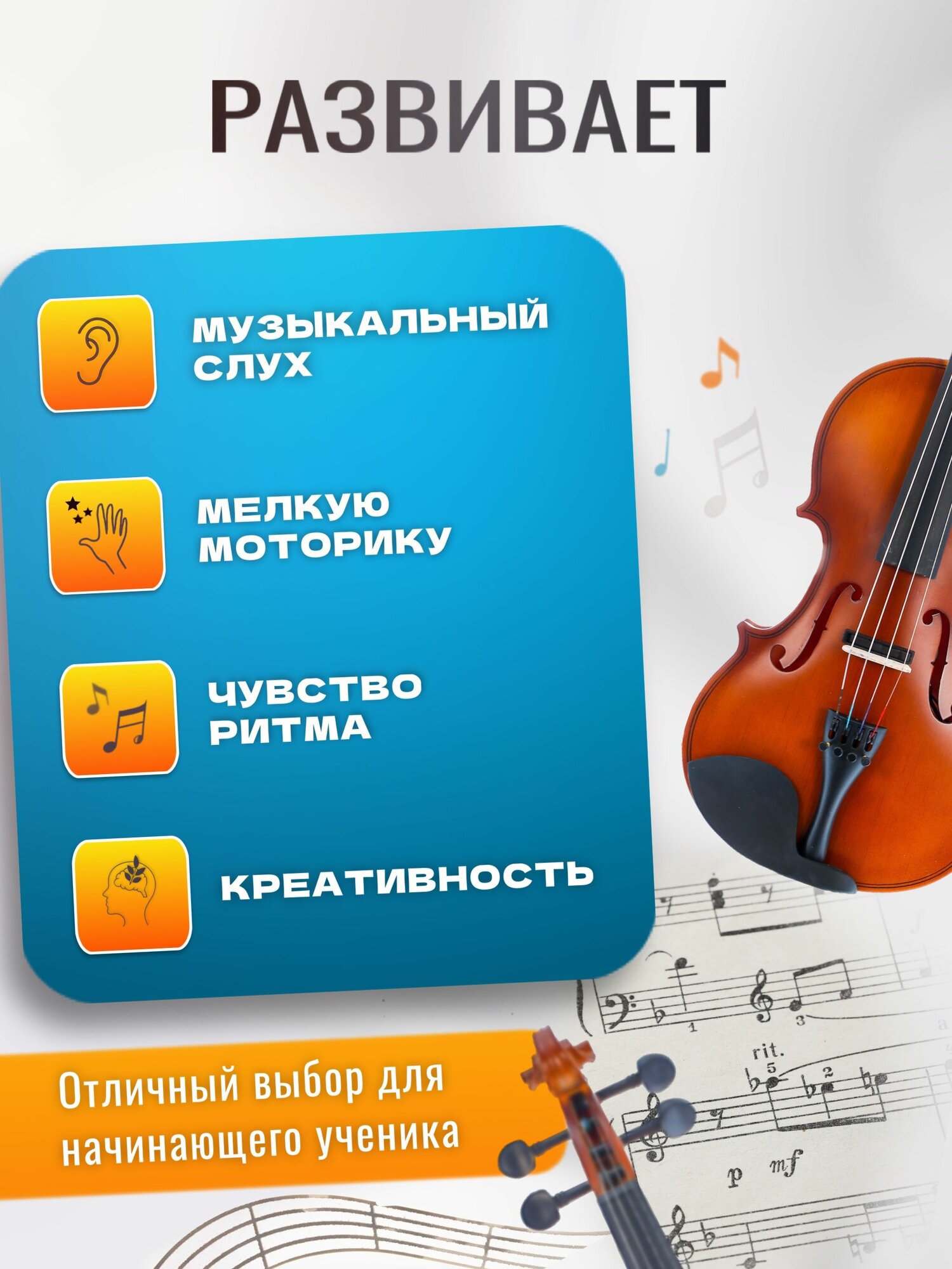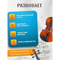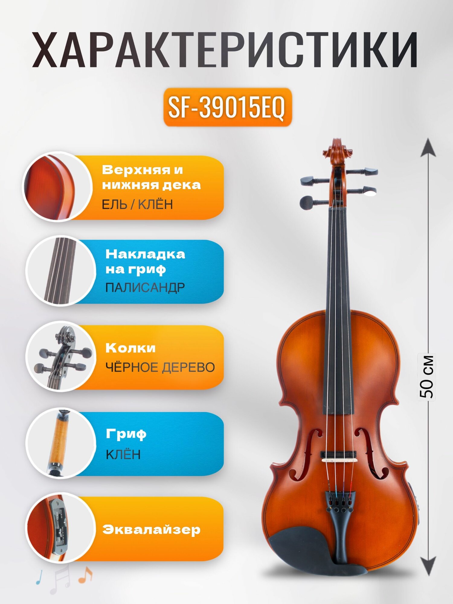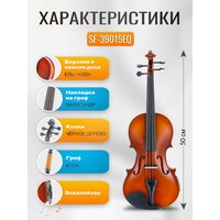 Fabio SF39-015E 4/4 – полноразмерная скрипка с легковесным кейсом и смычком в комплекте. Она выполнена по всем традициям изготовления данного рода инструмента – из ели в верхней деке и клена в нижней и обечайках. Кленовый гриф имеет гладкую накладку из ююбы, которые вместе обеспечивают комфортным исполнением. При этом теплое звучание этой скрипки поразит любого начинающего и учащегося музыканта. А отделка глянцевым лаком привлечет внимание. Эргономичный подбородник дает возможность заниматься в правильном положении и с комфортом, плюс металлический струнодержатель с 4 машинками поможет быстро подстроить инструмент.