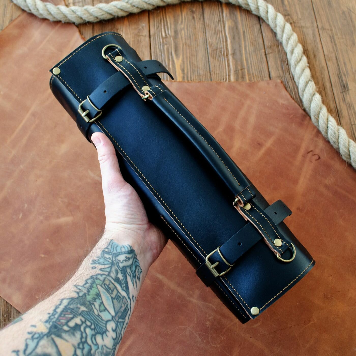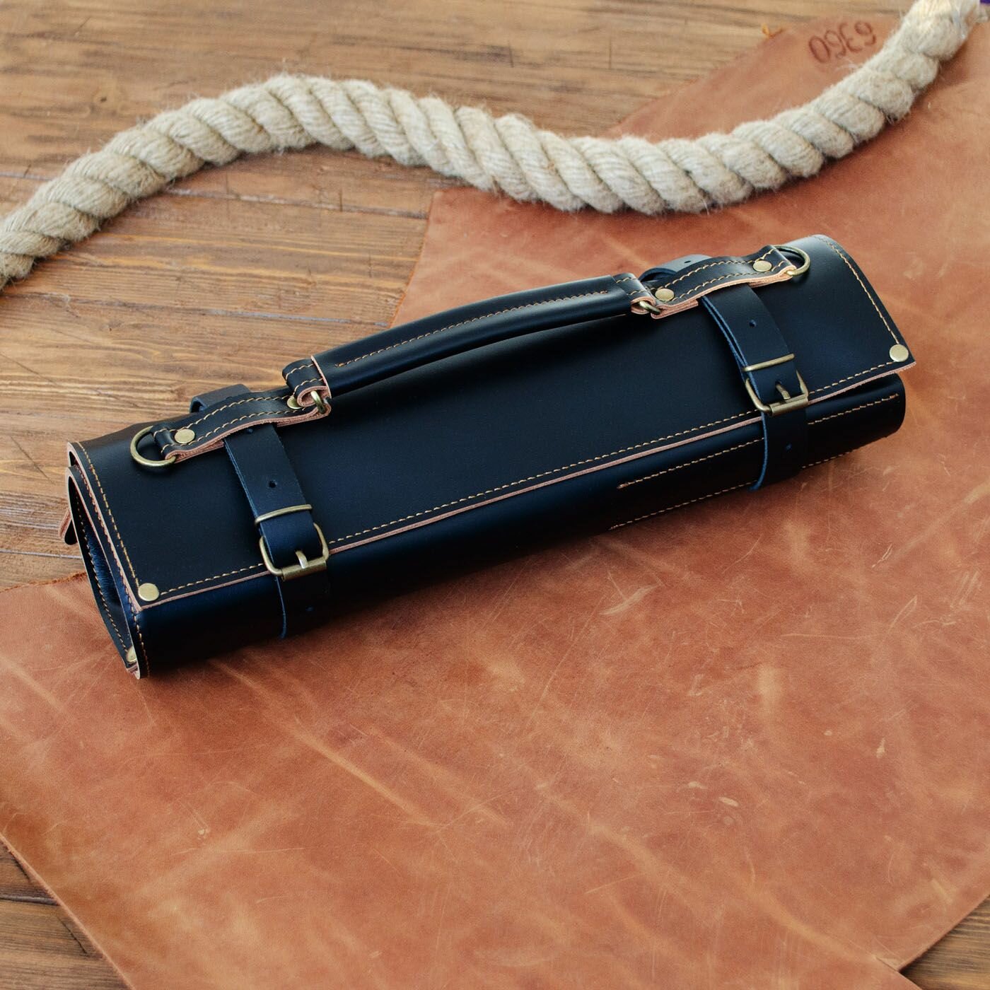 Скрутка (Чехол) для ножей из натуральной кожи для повара. Сверток на 5 ножей, с карманом на молнии: сравнение цен, характеристики, фото, актуальное наличие и цены.