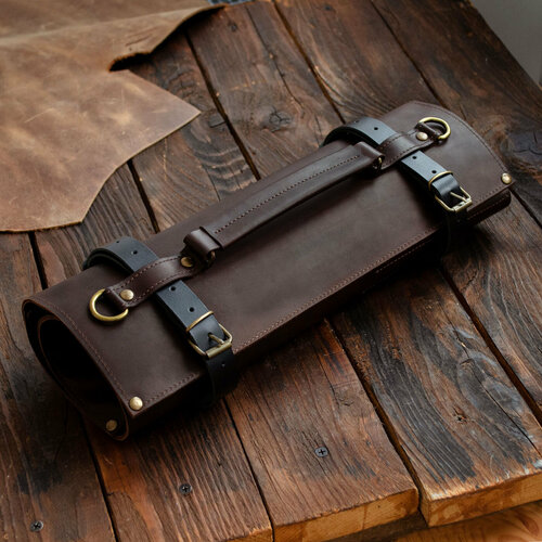 Скрутка (Чехол) для ножей из натуральной кожи для повара. Сверток на 5 ножей, с карманом на молнии: сравнение цен, характеристики, фото, актуальное наличие и цены.