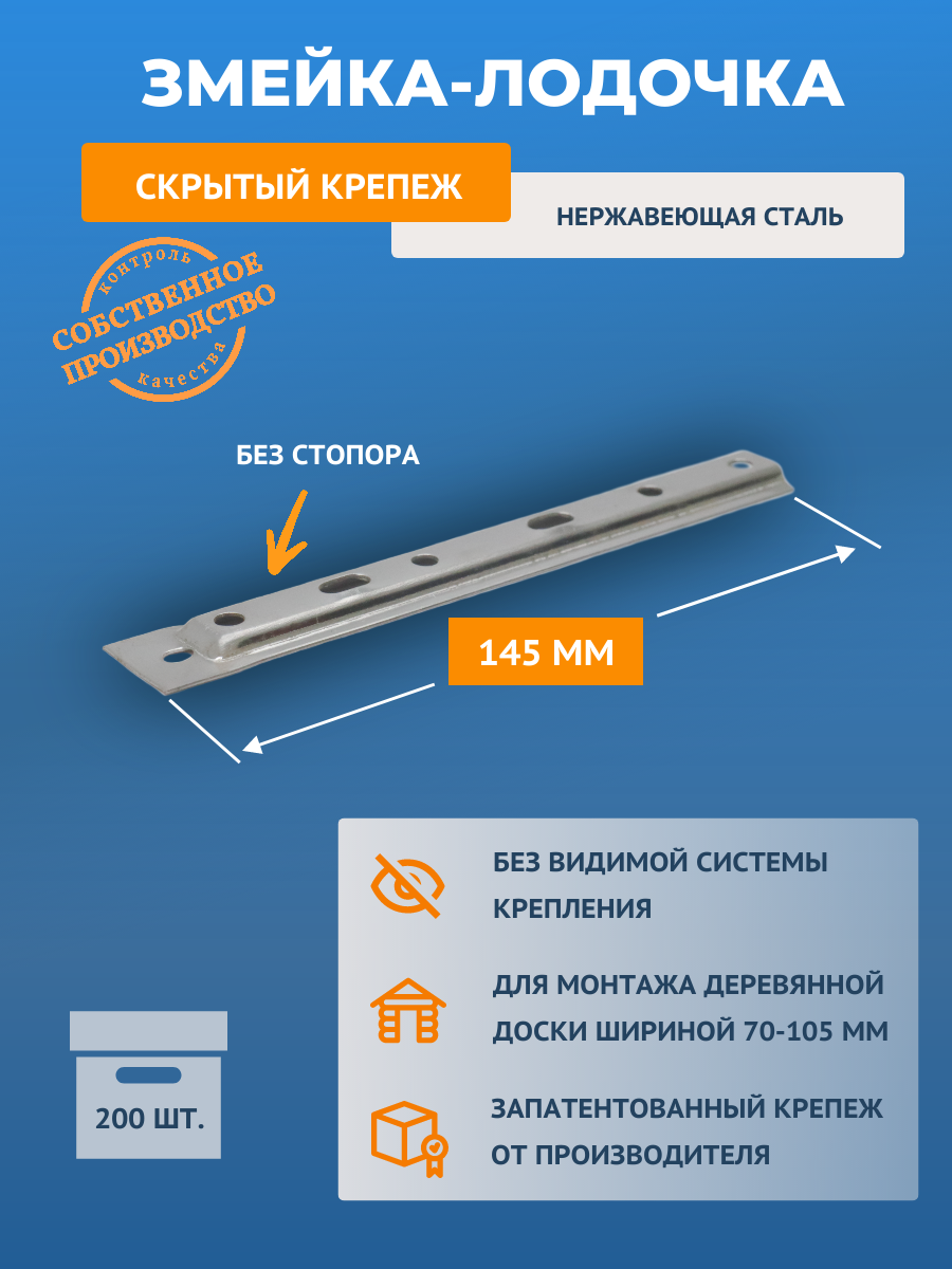 Скрытый крепеж для вагонки, блок-хаус, имитации бруса без стопора ДекТай Змейка-Лодочка 145 лнбс нержавеющая сталь (0,8)200 шт: сравнение цен, характеристики, фото, актуальное наличие и цены.