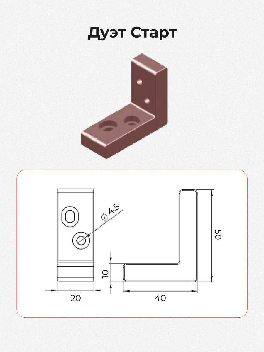 -Имеет вид уголка и предназначен для монтажа стартовых или финишных досок на вертикальных, горизонтальных и потолочных конструкциях;