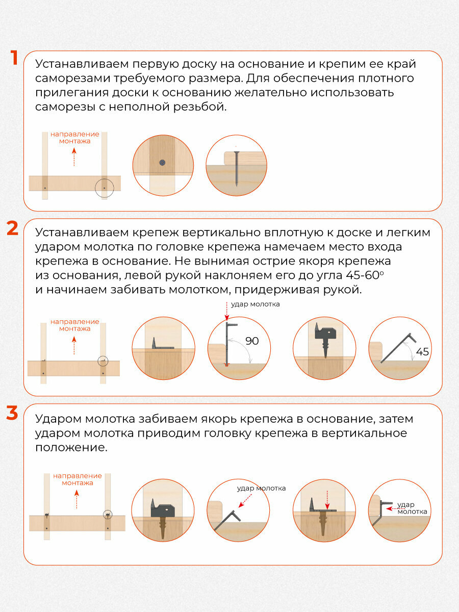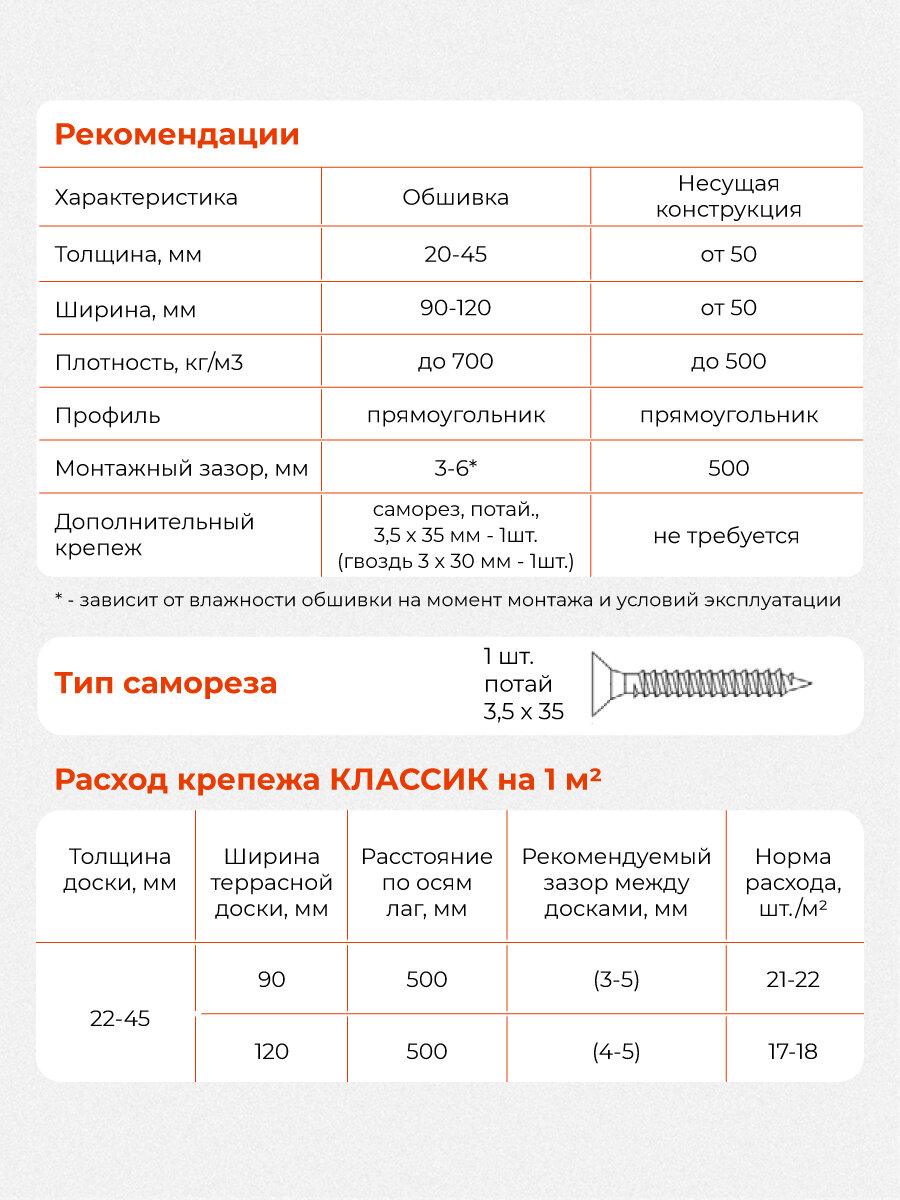 Этот крепежный элемент рекомендуется для использования в высоконагруженных горизонтальных настилах (например, из террасной и палубной доски).