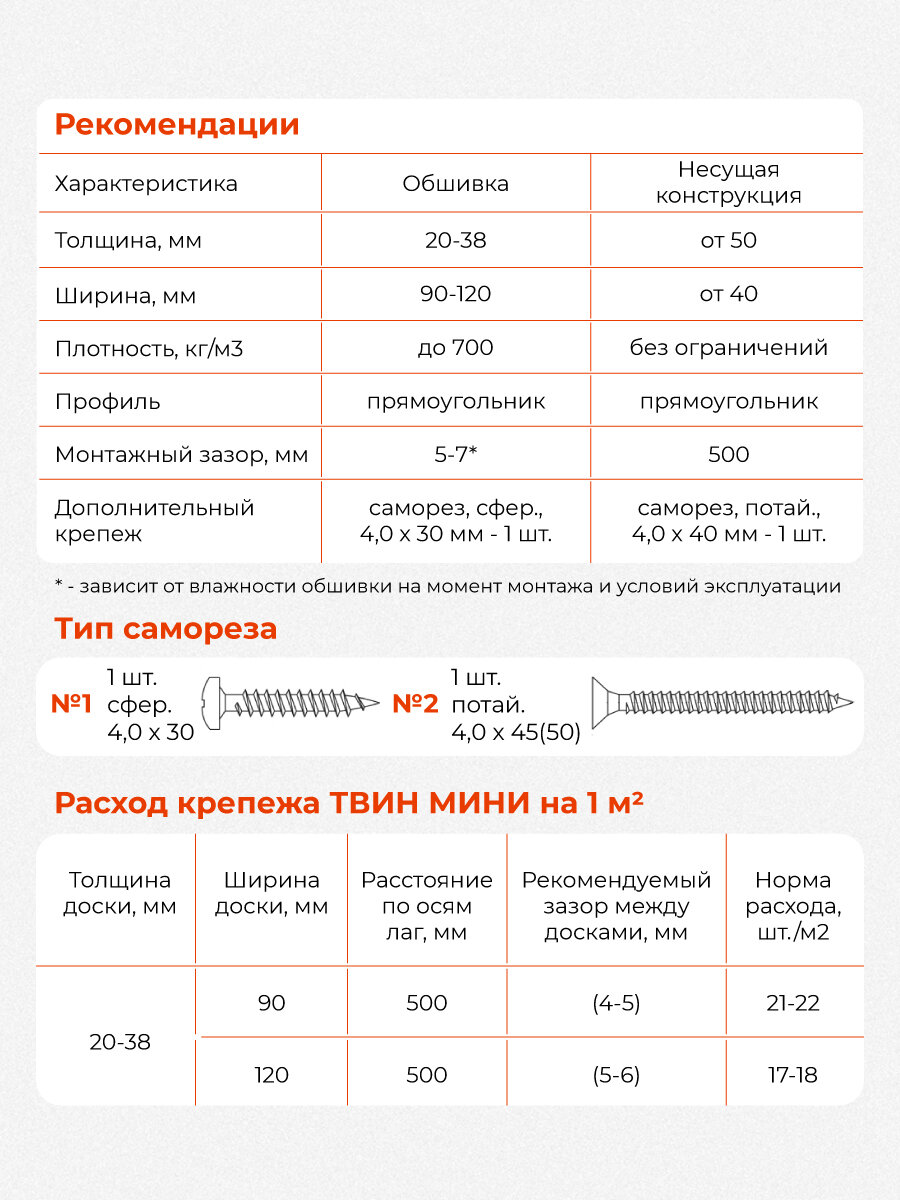 Для монтажа рекомендуется использовать саморезы с потайной головкой 4,0х40 и со сферической головкой 4,0х30.