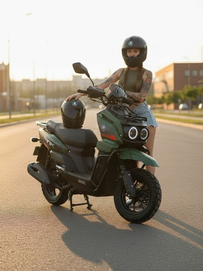 Купить Скутер 49сс SPRMOTORS TANK, зеленый, в собранном виде, без ПТС с доставкой по всей России.