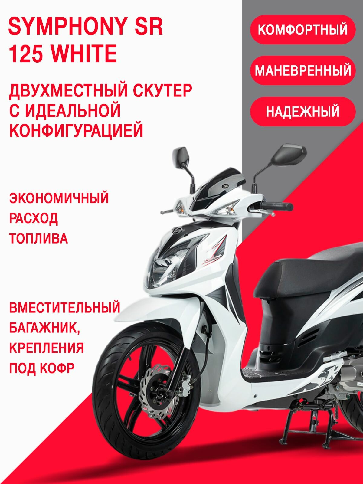 Скутер SYM Symphony SR 125 Белый: сравнение цен, характеристики, фото, актуальное наличие и цены.