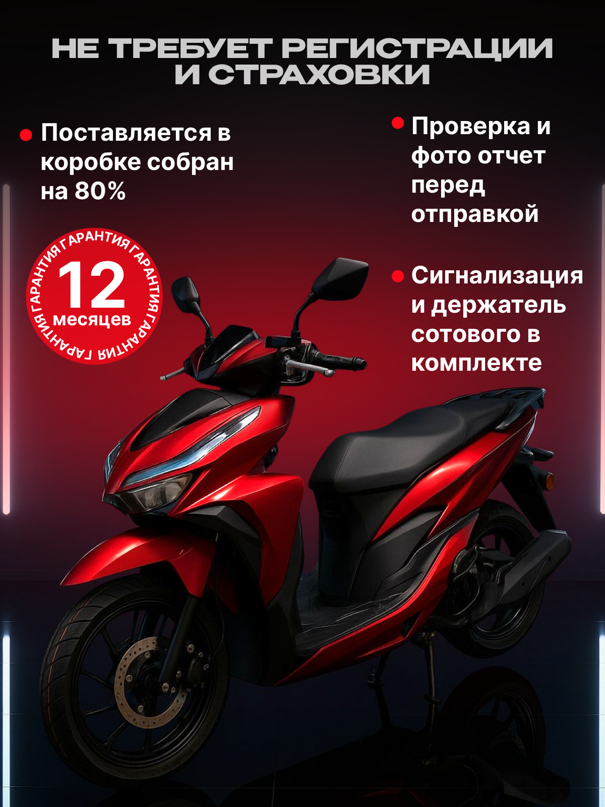 Купить Скутер VMC «VENTO INFERNO», с электростартером, максимальная скорость до 100 км/час с доставкой по всей России.