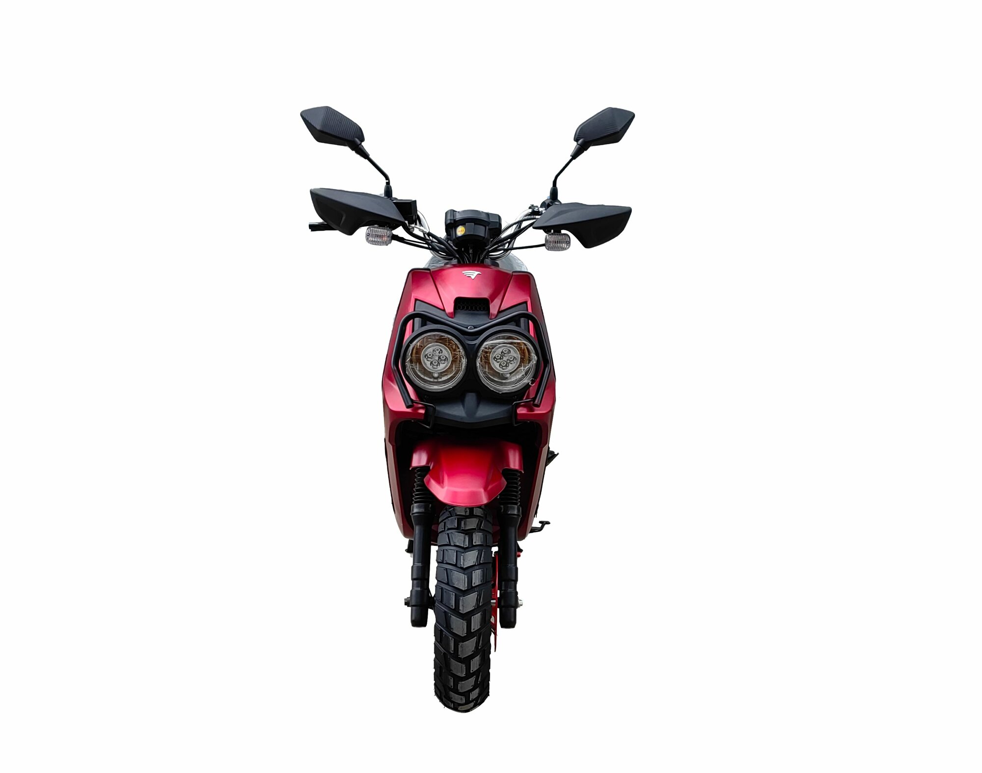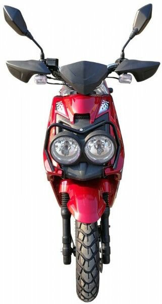 Скутер оборудован 2-мя фарами, что обеспечивает хорошую видимость в темное время суток. Поворотники и зеркала заднего вида обеспечивают безопасность на дороге.