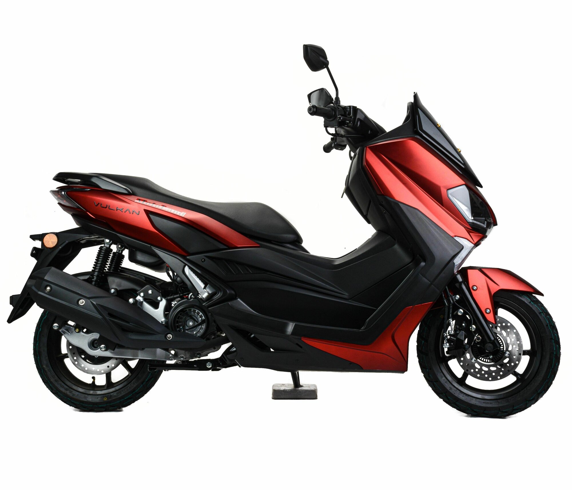Скутер Motoland Vulkan 150 – классический максискутер для тех, кому нужен комфортный мотоцикл для города и путешествий. Оснащен двигателем 150 см3, мощностью 10 л. с. с интуитивно понятной полкой крутящего момента, большой колесной базой, светодиодной оптикой, легкими колесами увеличенного размера из алюминиевого сплава, вариаторной КПП и двумя стартерами. Подойдет как новичкам , так и продвинутым пользователям, которым нужна солидная динамика разгона в городе и высокая крейсерская скорость по трассе в купе с прямой посадкой и комфортом скутера.