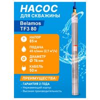 Скважинный центробежный насос Belamos (Беламос) TF3-80, 45 л/мин, Н-85 м, Ø-3″, каб.50 м: сравнение цен, характеристики, фото, актуальное наличие и цены.